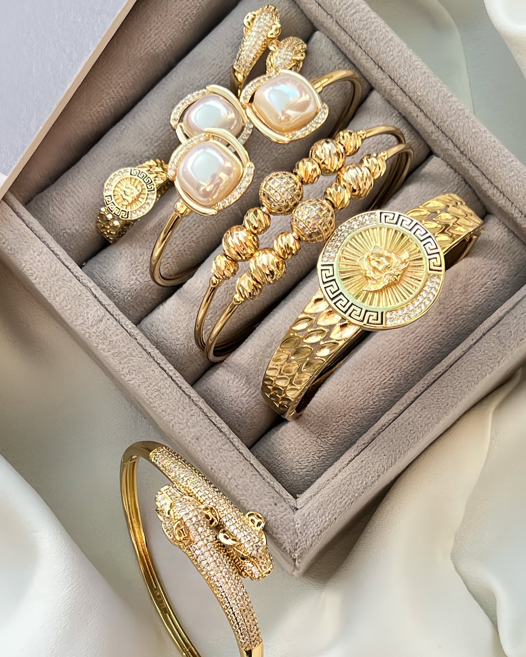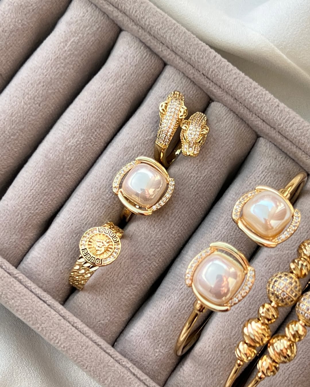 ست بنگل و انگشترهای دلبر و جذابمون مناسبترین و لوکس ترین هده روز مادر. کیفیت و ابکاری درجه یک، بینظیر، کاملا مشابه طلاشون ضد حساسیت و نگین مخراج شده بدون ریزش.